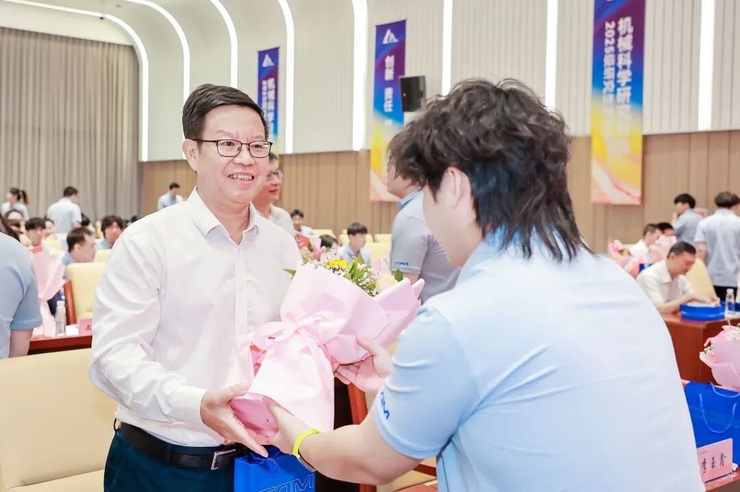 典禮上,王德成、李玉鑫及導(dǎo)師代表共同為新生佩戴總院徽章。這枚徽章不僅象征著中國(guó)機(jī)械總院人的身份,更承載著“以提升中國(guó)裝備制造水平為己任”的使命與榮光。優(yōu)秀導(dǎo)師獎(jiǎng)、最受歡迎教師獎(jiǎng)、新生入學(xué)獎(jiǎng)學(xué)金和優(yōu)秀課程獎(jiǎng)獲獎(jiǎng)代表上臺(tái)領(lǐng)獎(jiǎng)。新生代表手捧鮮花向?qū)焸儷I(xiàn)上誠(chéng)摯敬意與節(jié)日祝福,表達(dá)莘莘學(xué)子的感激之情。